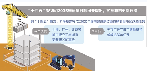 房企參與城市更新有望獲得更多支持。“十四五”規(guī)劃和2035年遠景目標綱要明確提出,實施城市更新行動。老舊小區(qū)改造是城市更新的重要內容之一,我國提出,到“十四五”期末,結合各地實際,力爭基本完成2000年底前建成需改造城鎮(zhèn)老舊小區(qū)改造任務。住房和城鄉(xiāng)建設部有關負責人曾表示,鼓勵房地產開發(fā)企業(yè)參與老舊小區(qū)改造。今年以來,多省市密集出臺相關舉措推進城市更新。除上海設立了城市更新基金以外,據報道,7月份無錫市也設立了城市更新基金,基金規(guī)模達300億元,專項用于投資無錫舊城區(qū)改造和城市更新項目規(guī)劃、建設、開發(fā)及運營等。此外,廣州、北京等城市也設立了與城市更新相關的基金。