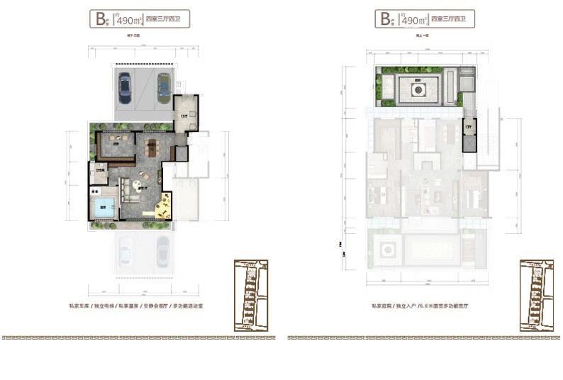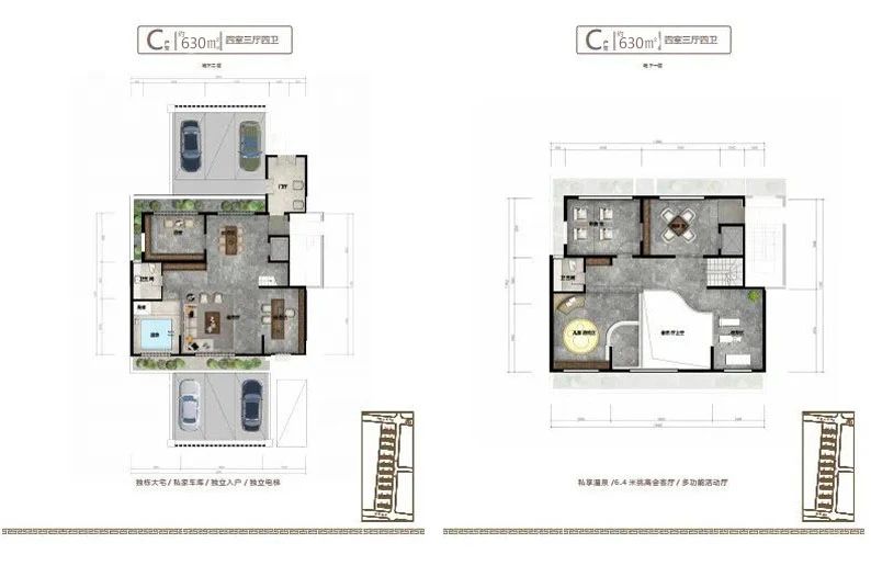 地下室設(shè)計(jì)不同于傳統(tǒng)地下室,只能為儲(chǔ)藏室使用,而小區(qū)地下室層高和地上建筑面積層高一致,達(dá)到了3.2米,沒有空間壓抑感,在南北庭院都設(shè)有1.2米的通風(fēng)采光井,室內(nèi)鋪設(shè)地暖及溫泉管道,上下水和衛(wèi)生間,私密性特強(qiáng),可以設(shè)計(jì)桑拿房,健身房,保姆間,洗衣房,酒窖及休閑娛樂等多功能區(qū)域,對(duì)于鄰居既不會(huì)產(chǎn)生噪音干擾,更不會(huì)打擾到家人的休息,在提高了生活品質(zhì)的同時(shí)也不會(huì)由空間局促感,地下室可以直通地下私家車庫,車庫層高4.2米,寬約7-10米,至少可以容納家用汽車三輛。
