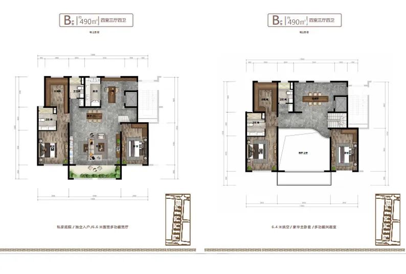 項(xiàng)目主打聯(lián)排疊墅戶型設(shè)計(jì),疊墅是低密度住宅,樓距寬,樓棟密度小,保持有一定的私密性,每戶擁有私家獨(dú)立庭院,及私家花園露臺(tái),庭院入戶,室內(nèi)層高3.2米,每戶設(shè)有私家電梯可以直達(dá)室內(nèi)任一層及空中露臺(tái),地下室和私家車庫。客廳開間6.6米,層高挑空6.4米的設(shè)計(jì)(挑空部分不計(jì)算面積),另外挑空部分可以根據(jù)業(yè)主需求,自行設(shè)計(jì),可以增加一個(gè)約40平米的起居室。