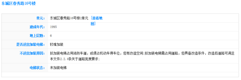 北京市住房城鄉(xiāng)建設(shè)委組織各區(qū)對本轄區(qū)內(nèi)市屬老舊小區(qū)約2萬多棟既有多層住宅樓、10萬余個(gè)單元門,從建筑結(jié)構(gòu)安全、空間條件和居民意愿等方面進(jìn)行了初步摸排評估,在此基礎(chǔ)上,會(huì)同市有關(guān)部門開發(fā)了加梯地圖專欄,為居民實(shí)現(xiàn)既有住宅“加梯夢”提供了一份詳細(xì)的攻略圖。