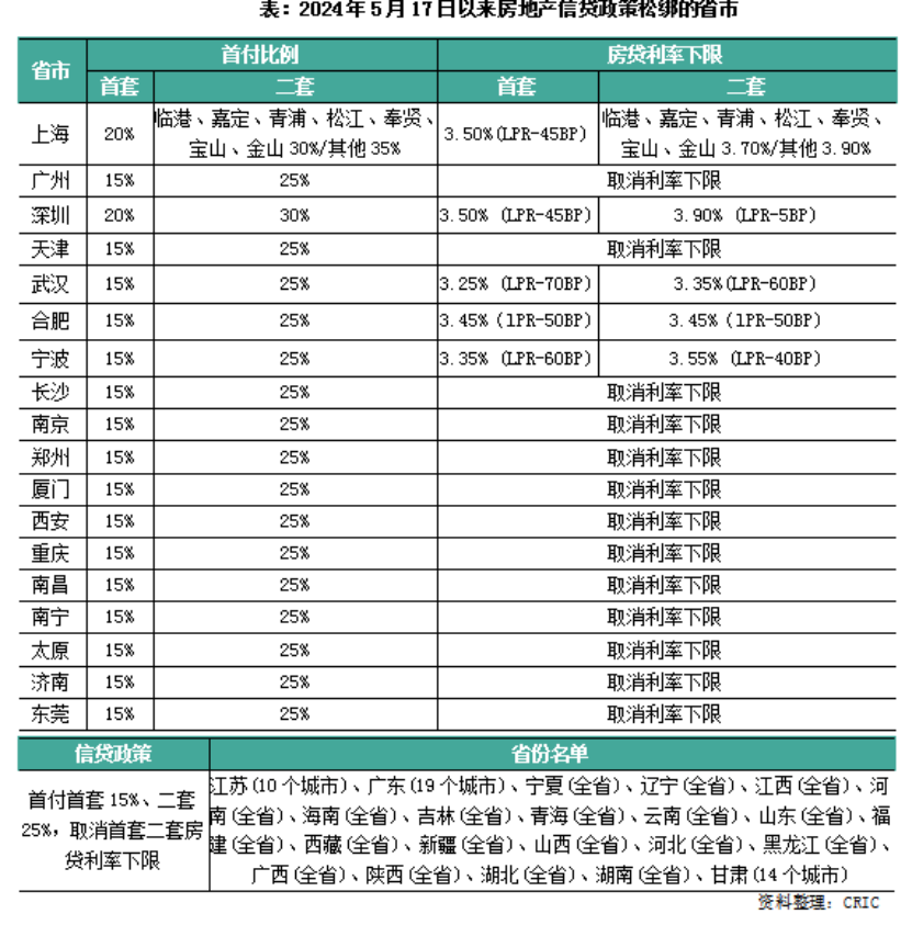 5月17日,央行將首套、二套房首付比例下限再下調(diào)5個(gè)百分點(diǎn),調(diào)整后分別為15%、25%。此后據(jù)克而瑞研究中心統(tǒng)計(jì),山東、福建、河南等超22個(gè)省份已經(jīng)落地執(zhí)行,全國超過200個(gè)城市15%首套房最低首付比例。