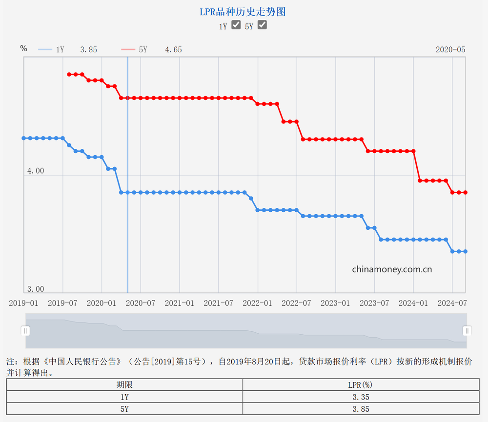2024年9月20日,全國銀行間同業(yè)拆借中心公布新版LPR報(bào)價(jià):1年期品種報(bào)3.35%,上月為3.35%;5年期以上品種報(bào)3.85%,上月為3.85%。數(shù)據(jù)顯示,最新LPR維持不變,這使得市場預(yù)期落空。