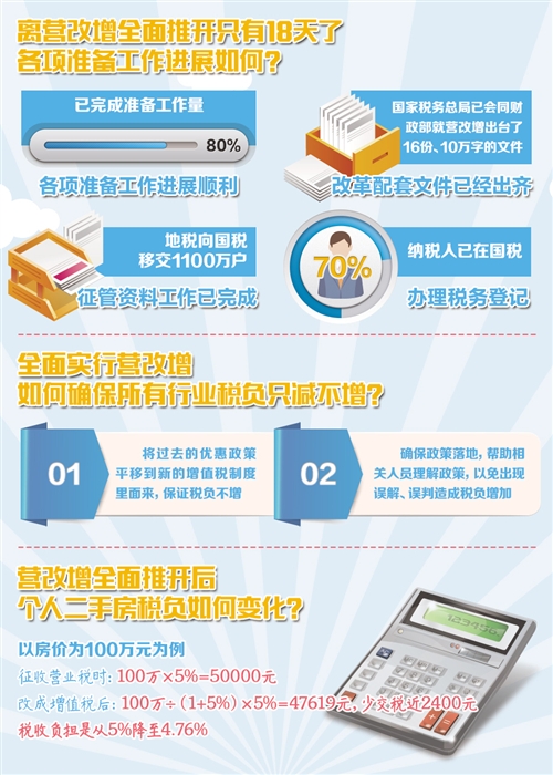 記者:營(yíng)改增試點(diǎn)涉及范圍廣,改革難度高,離全面推開(kāi)也只剩不到20天。當(dāng)前各項(xiàng)準(zhǔn)備工作進(jìn)展如何?