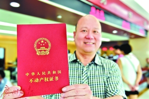 一市民領(lǐng)到不動產(chǎn)權(quán)證書。 新華社發(fā)(呂斌攝)