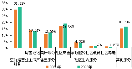 2021-2022年百強企業(yè)社區(qū)增值服務(wù)分類及占比情況