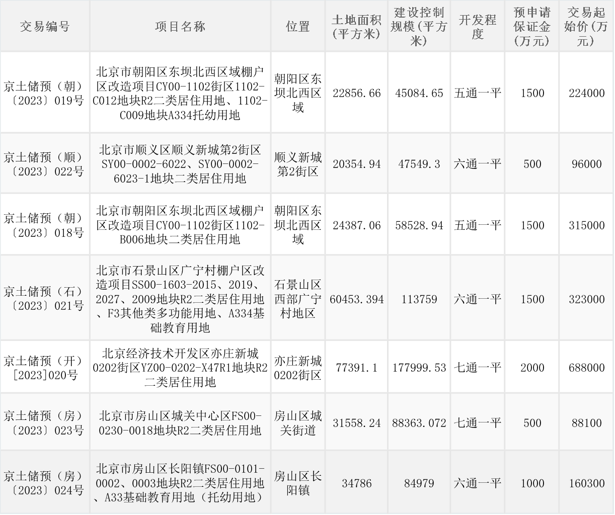 央廣網(wǎng)北京5月8日消息 5月6日晚間,北京市規(guī)劃和自然委員會(huì)掛牌7宗預(yù)申請(qǐng)住宅用地。其中,朝陽區(qū)、房山區(qū)各兩宗,經(jīng)開區(qū)、順義區(qū)、石景山區(qū)各一宗,總土地面積約27.18萬平方米,總建設(shè)控制規(guī)模約61.63萬平方米,總起始價(jià)189.44億元。