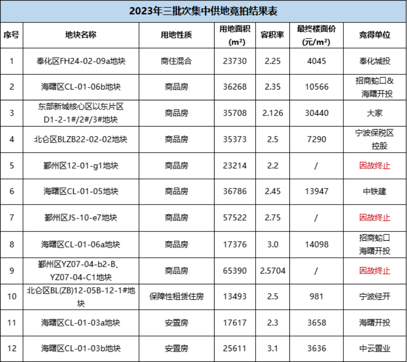 央廣網(wǎng)北京6月28日消息 6月28日,寧波第三輪土拍正式開啟。原定12宗地塊,有3宗臨時終止,最終僅有9宗地塊成功出讓,其中海曙5宗、鄞州1宗、北侖2宗、奉化1宗。