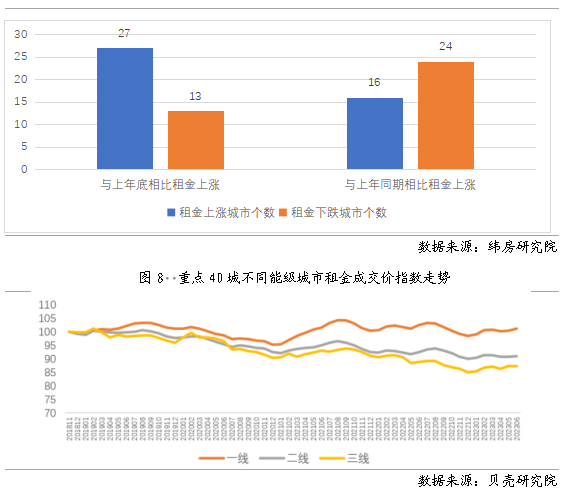 圖7 重點(diǎn)40城租金漲跌情況