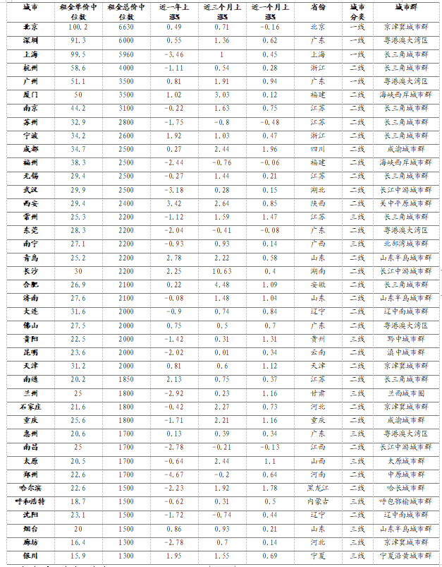 與去年同期相比,一線城市住房租金以微漲為主,其中廣州住房租金上漲0.80%,深圳上漲0.56%,北京上漲0.48%,但上海下降3.47%。