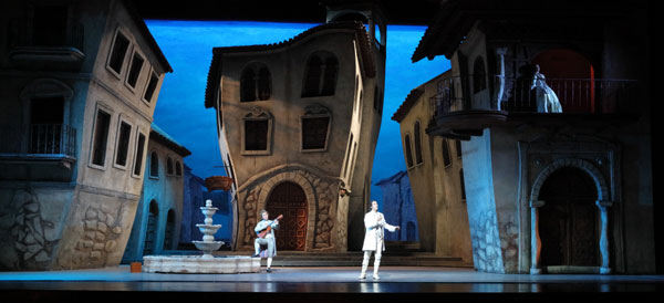 7月13日當(dāng)晚,隨著歌劇指揮莫蘭迪引領(lǐng)國(guó)家大劇院管弦樂(lè)團(tuán)奏出《塞維利亞理發(fā)師》膾炙人口的序曲旋律,大幕拉開(kāi),由著名舞臺(tái)設(shè)計(jì)師張武設(shè)計(jì)的“高迪建筑風(fēng)格”的塞維利亞小鎮(zhèn)展現(xiàn)在觀眾面前。