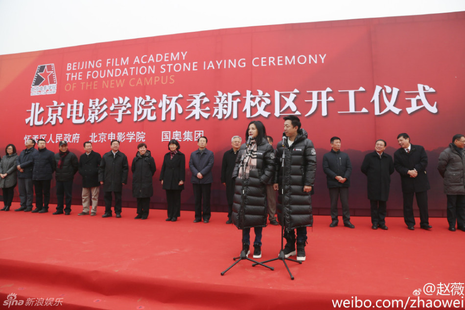 12月25日,北京電影學(xué)院懷柔新校區(qū)開工儀式舉行。趙薇、黃渤作為資深校友現(xiàn)身奠基儀式,穿羽絨服鏟土。趙薇贊“地杰人靈之地!”