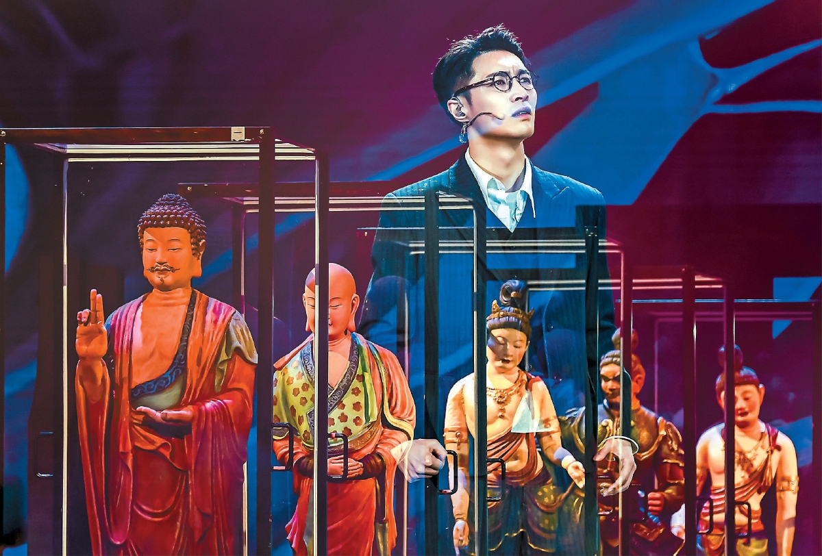 國(guó)家話劇院音樂(lè)話劇《受到召喚·敦煌》的舞臺(tái)上,張藝興的殺手锏是“真誠(chéng)”,臺(tái)詞真誠(chéng)、演唱真誠(chéng)、肢體語(yǔ)言更真誠(chéng)……從1935年的常書(shū)鴻到2035年的張燃,橫跨100年的兩個(gè)人被張藝興以真誠(chéng)連接,最終殊途同歸。距離2024年演出收官將近半年的時(shí)間,這艘承載著文化使命的巨型航母再度起航,南京、蘭州、成都……一步一蓮花,在行走中“修行”。如果說(shuō)一部話劇讓敦煌不止于學(xué)界,更屬于每個(gè)人,那么這部舞臺(tái)鴻篇也遠(yuǎn)遠(yuǎn)超出了一臺(tái)戲的范疇,成了主演張藝興和劇組的精神原鄉(xiāng)。