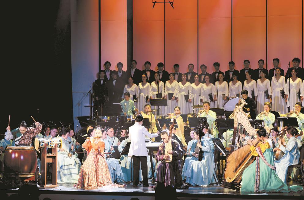 作曲家孔志軒分享了演出細(xì)節(jié),此次他優(yōu)化了第五與第六篇章。“第五篇章《風(fēng)骨錚鳴》擴(kuò)充原有結(jié)構(gòu),層層遞進(jìn)間讓風(fēng)骨內(nèi)涵更立體豐滿;第六篇章《星河共潮》則精簡結(jié)構(gòu),凝練打磨各部分音樂形象,核心是凸顯中華民族屹立不倒的民族氣節(jié)?!?/p>