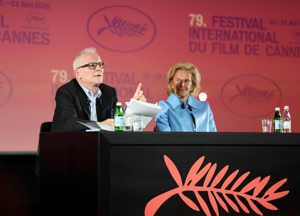 4月9日,戛納電影節(jié)主席伊麗絲·克諾布洛赫(右)與戛納電影節(jié)藝術(shù)總監(jiān)蒂埃里·弗雷莫出席在法國巴黎舉行的新聞發(fā)布會。新華社記者 鄔惠我 攝