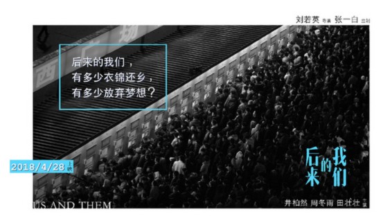 作為劉若英的電影導(dǎo)演處女作,同時(shí)“優(yōu)質(zhì)青年演員”井柏然和“金馬影后”周冬雨的傾情加盟,讓電影《后來(lái)的我們》未上映就備受關(guān)注。故事圍繞井柏然、周冬雨兩主人公在幾次春運(yùn)過(guò)年回家期間發(fā)生的邂逅與愛情周折,體現(xiàn)出如今大都市漂泊奮斗的年輕人的情感和遭遇。電影目前已經(jīng)進(jìn)入后制階段,并宣布定檔4月28日,進(jìn)入五一檔。