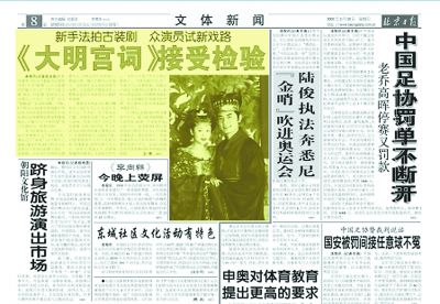 2000年3月30日,《北京日?qǐng)?bào)》對(duì)電視劇《大明宮詞》的報(bào)道