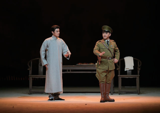 該劇劇本創(chuàng)作在深入挖掘并領(lǐng)會(huì)原著小說精神內(nèi)涵的基礎(chǔ)上,充分融入京劇表現(xiàn)手法進(jìn)行呈現(xiàn)。唱腔設(shè)計(jì)由知名作曲家朱紹玉擔(dān)綱,行當(dāng)齊全,有旦角、老生、花臉、丑角,且每個(gè)行當(dāng)都有大量唱腔。尤其是“關(guān)敬陶”與“楊曉冬”合唱的激蕩人心的“雙嘎調(diào)”,音樂與劇情相互映襯,將全劇推向高潮。這些也都讓觀眾點(diǎn)贊、大呼過癮。