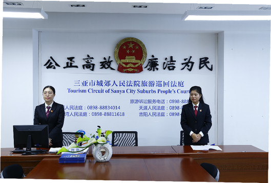 三亞城郊法院負責人介紹說,旅游巡回法庭進一步構建和完善與工商、旅游等部門之間的聯(lián)動機制,以“景區(qū)有糾紛及時聯(lián)系”和“法庭定點定期值班”結合的方式,提供便民高效的司法服務。