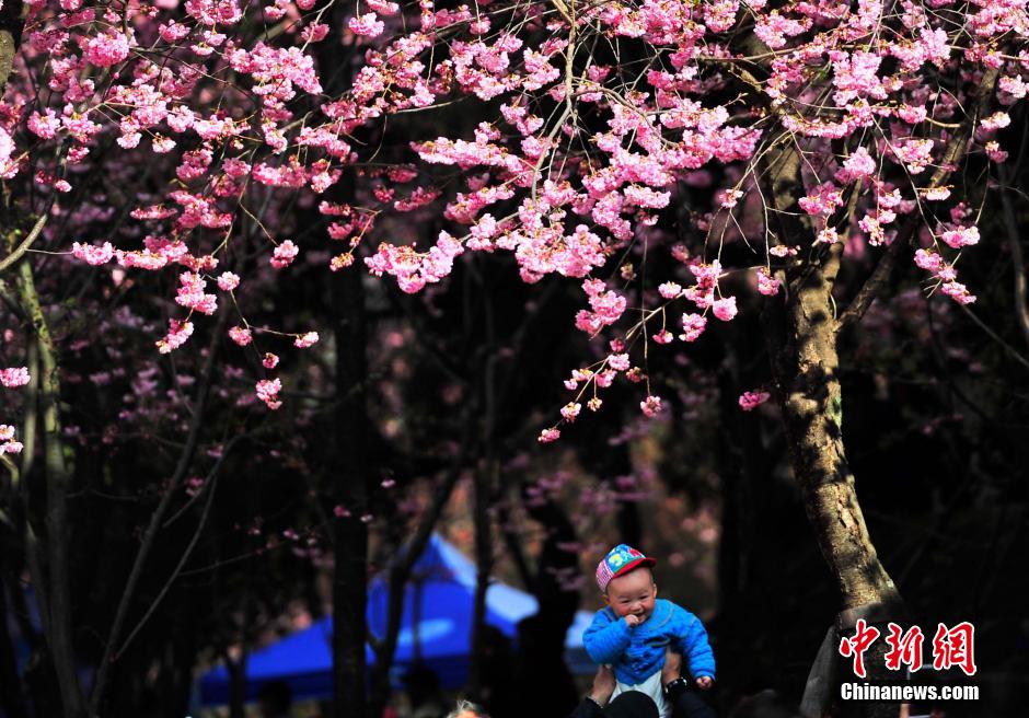 近日,昆明圓通山的櫻花和海棠花逐漸進(jìn)入盛花期,引來(lái)眾多市民踏春趕花潮。圓通山工作人員介紹,受此前寒潮的影響,海棠和櫻花花期推遲,但顏色比往年更艷麗且花量增加。中新社記者 劉冉陽(yáng) 攝