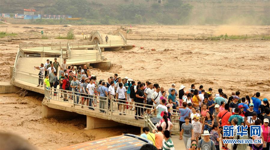 近日,受上游地區(qū)強降雨天氣影響,位于山西吉縣和陜西宜川縣交界的黃河壺口瀑布水量大漲。目前,壺口景區(qū)已啟動應(yīng)急預(yù)警,工作人員加強上游水情監(jiān)測并加大安全巡查力度,確保游客安全。新華社發(fā)(呂桂明 攝)