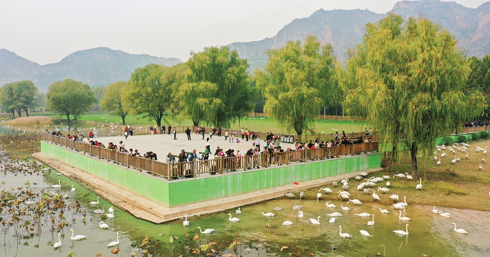11月10日,運(yùn)城市平陸縣三灣黃河濕地,成群野生大天鵝在這里棲息越冬,吸引眾多游客前來(lái)觀賞,展現(xiàn)出一幅人與自然和諧相處的美麗生態(tài)畫(huà)卷。近年來(lái),平陸縣持續(xù)推進(jìn)黃河沿岸濕地生態(tài)治理與環(huán)境修復(fù),拉動(dòng)當(dāng)?shù)剞r(nóng)文旅產(chǎn)業(yè)深度融合,助推縣域經(jīng)濟(jì)高質(zhì)量發(fā)展。