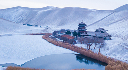 2024年12月10日,甘肅敦煌迎來了入冬以來的第二場雪。雪后的鳴沙山月牙泉景區(qū)銀裝素裹,景色迷人,吸引了眾多游客前來觀光游覽。王斌銀攝(人民圖片網(wǎng))