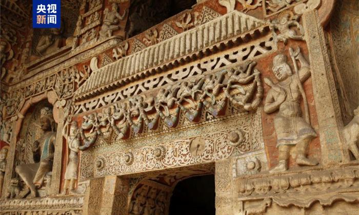 今天,經過15個月的系統(tǒng)性維護,世界文化遺產云岡石窟第九窟正式恢復對公眾開放。第九窟位于云岡石窟群中部,是典型的漢風洞窟。石窟外觀古樸厚重,崖壁上留存著歲月侵蝕的痕跡,其采用列柱式前后室結構,窟內四壁分層布龕,現(xiàn)存造像1140余尊(身)。