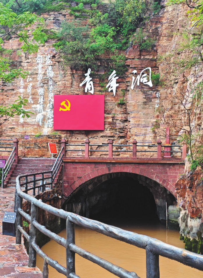 面對(duì)干旱缺水的生存困境,林縣人民以“一錘一釬一雙手”苦干十年,削平1250座山頭,鑿?fù)?11個(gè)隧道,在太行山間建成全長(zhǎng)1500公里的水利工程,創(chuàng)造了開(kāi)通“人工天河”的世界奇跡。青年洞是紅旗渠的咽喉所在,攀援在懸崖峭壁之上,縣里挑選了300名青年組成突擊隊(duì),晝夜施工,每人每天只有六兩糧。為了填飽肚子,他們上山挖野菜,下河撈水草充饑,以愚公移山精神挖山不止,經(jīng)過(guò)17個(gè)月的苦戰(zhàn),終于鑿?fù)?16米長(zhǎng)的隧道。