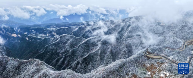 11月18日在貴州梵凈山景區(qū)拍攝的冬景(無人機(jī)照片)。新華社發(fā)(李鶴攝)