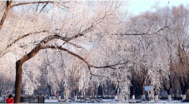 2025年12月14日,遼寧沈陽(yáng)北運(yùn)河岸出現(xiàn)霧凇景觀,吸引市民駐足觀賞拍照。黃金崑攝(人民圖片網(wǎng))