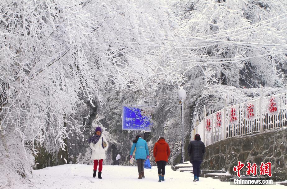 廬山罕見(jiàn)春雪霧凇同現(xiàn) 銀裝素裹如詩(shī)如畫