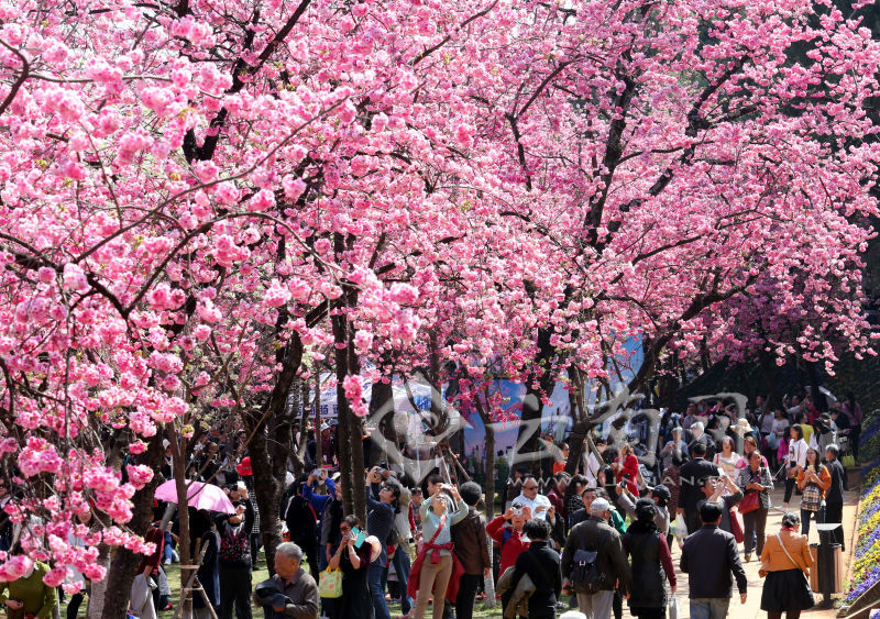 3月13日,昆明圓通動(dòng)物園人潮涌動(dòng),數(shù)千株櫻花和海棠進(jìn)入盛花期,吸引大批游客前來(lái)賞花觀(guān)景。