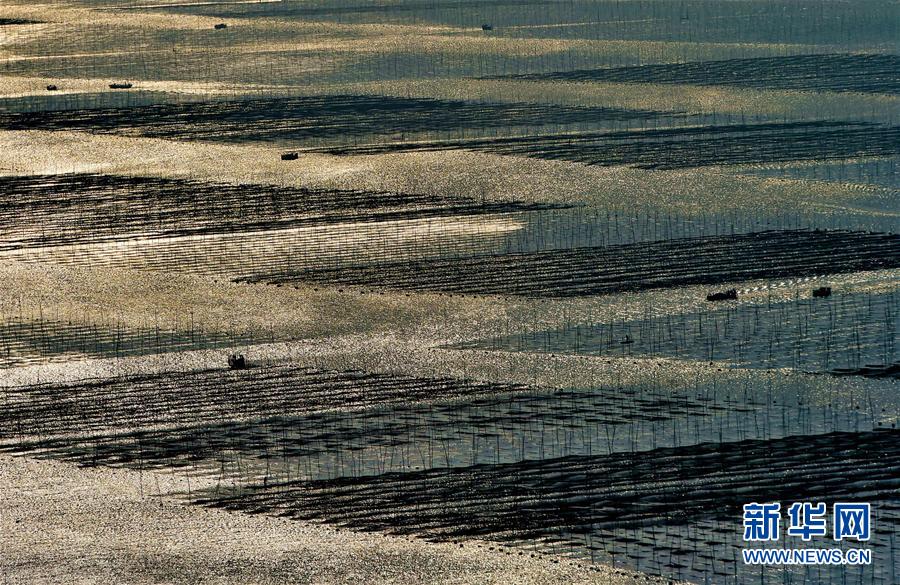 12月9日,夕陽西下,一艘漁船穿行在海上紫菜養(yǎng)殖架間。福建省寧德市的霞浦縣以美麗的淺海、灘涂聞名,豐富的旅游資源和人文資源一直是攝影師追逐的靈感所在。 新華社記者魏培全攝