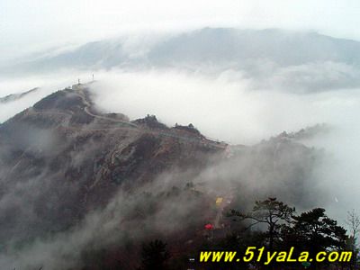 北武當(dāng)山主峰四周幾乎都是陡壁懸崖,只有一條人造“天梯”可攀。來到山腳下,過五里黃土、五里沙路,便是1400余級(jí)就山鑿筑的石階,凡險(xiǎn)峻之處,設(shè)有鐵索扶手。石階一線疊置,從下仰視,宛如“天梯”。游人攀登,每一步都可聽到悠揚(yáng)頓挫的“石音”,形成獨(dú)特的“石樂”絕景。沿著石階,奇松異石、廟宇石刻,掩沒在蔥郁的山林植被之中,相間點(diǎn)綴,相映成趣。主要的山石景觀有:古猿望日、石豬受難、九龍出洞、石象守山、天壺傾露、石羊朝圣、石龜下蛋、石虎、石蛤蟆、龜蛇斗智等。最令人稱奇的是“龜蛇斗智”奇觀,相傳神龜和青蛇不安心修道,互相格斗,經(jīng)過七七四十九天的麈戰(zhàn),神龜節(jié)節(jié)敗退,青蛇步步緊逼。其時(shí),恰逢真武大帝返宮,見狀,輕輕用手指一點(diǎn),龜蛇便動(dòng)彈不得,從此永久停留在這里,成千古一絕——“蛇石”虎視眈眈,“龜石”尾臨懸崖,萬斤重石,峭立崖畔,用力一推或經(jīng)風(fēng)一吹,便搖搖欲墜,令人心懸,所以又稱風(fēng)動(dòng)石,為我國(guó)罕見的景觀之一。主要的奇松景觀有:鴛鴦松、迎客松、托天松、母子松等。最使人嘆為觀止的是“擎天探海松”,其松立于石階半道,樹身技分兩杈,一直刺青天,一枝瞰群峰。近金頂?shù)悄咸扉T石階,旁邊陡崖上刻有“喬松”二字,據(jù)載為清代道光年間永寧州牧王繼賢手跡?,F(xiàn)存喬松樹樁直徑近1米,可以想見其昔日雄姿。主要的懸崖峭壁有:千仞壁、舍身崖、鷹嘴崖等。還有呈垂直分布的植被,其色彩和花期隨季節(jié)變化,給北武當(dāng)山披上了“春粉、夏艷、秋紅、冬白”的盛裝。登臨武當(dāng)之巔,一覽眾山,但見遠(yuǎn)山蒼茫,近日含黛,松風(fēng)撲面,白云飄逸;只聞松濤陣陣,山泉潺潺,鳥語唧唧,似琴弦輕撥;夏秋之季,如晴空萬里,金頂之下,叢林景觀相間,似七彩織錦;白云遠(yuǎn)處,群山連綿,猶如萬龍翻騰,極為壯觀。