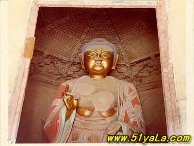 走進(jìn)第一層塔的南門,迎面便是高約10米的釋迦塑像。頂部有精美華麗的藻井。內(nèi)槽的墻壁上,畫有六幅如來佛像,門洞兩側(cè)的墻壁上,也繪有金剛、天王、弟子等壁畫。壁畫中最引人注目的是內(nèi)槽門額壁板上的三個(gè)女供養(yǎng)人。畫面雖不大,但人物的體態(tài)勻稱,面容豐滿,神情安詳而虔誠,衣帶似被微風(fēng)吹動(dòng),在表態(tài)中給人以動(dòng)的感覺。畫面的色彩至今仍很鮮艷,可能是后人在遼畫的基礎(chǔ)上重新描飾的。