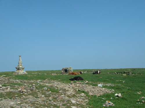 五臺山的西臺人稱掛月峰,又名明月山,海拔2773米?!肚鍥錾街尽份d:西臺“頂廣平,月墜峰巔,儼若懸鏡,因以為名”。臺頂有泉,群山拱合,巖谷幽深;臺頂亦有寺,名叫法雷寺,內(nèi)供獅子吼文殊,其寓意是讓強大的獅子吼叫聲驚醒眾生。整個山勢峰巒疊嶂,如同孔雀開屏。