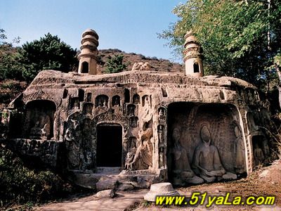 羊頭山梵剎,名曰清化寺,據(jù)記載始建于北魏孝文帝太和年間(四七七——四九九年),原名定國(guó)寺,北齊時(shí)改名宏福寺,隋末寺廢,唐武則天天授二年(六九一年)重建,并改額清化。今清化寺建筑已不存,尚留石佛三尊、明碑一通和殿堂遺址,但寺周北魏至隋唐時(shí)期窟龕造像和石塔仍依然如故。