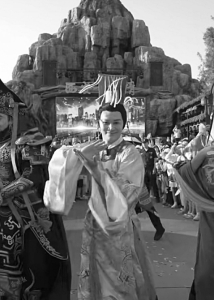 49歲的知名演員鄭國(guó)霖身著明黃龍袍、金冠束發(fā)、嘴叼玫瑰,騎著摩托車載著另一位扮演“秦始皇”的演員呼嘯而過。兩位“千古一帝”的魔性互動(dòng)引得現(xiàn)場(chǎng)游客陣陣歡呼。這并非影視劇拍攝現(xiàn)場(chǎng),而是上海千古情景區(qū)的日常一景。
