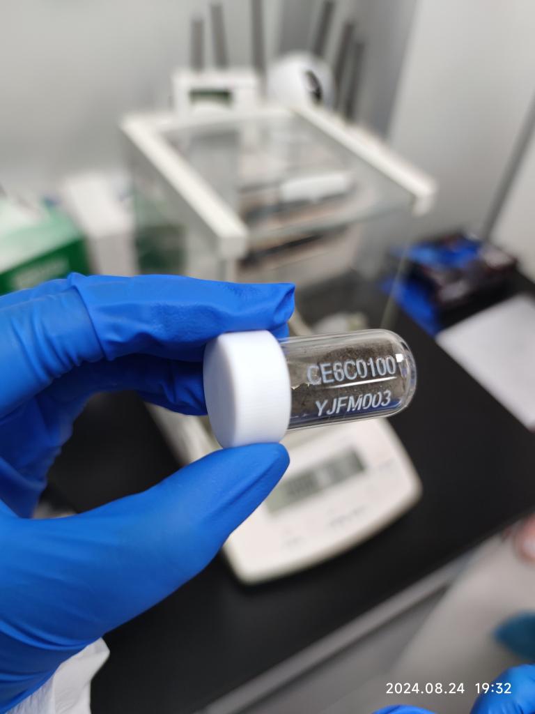 2024年8月24日,在中國科學(xué)院廣州地球化學(xué)研究所實(shí)驗(yàn)室內(nèi)拍攝的月壤樣品。(中國科學(xué)院廣州地球化學(xué)研究所供圖)