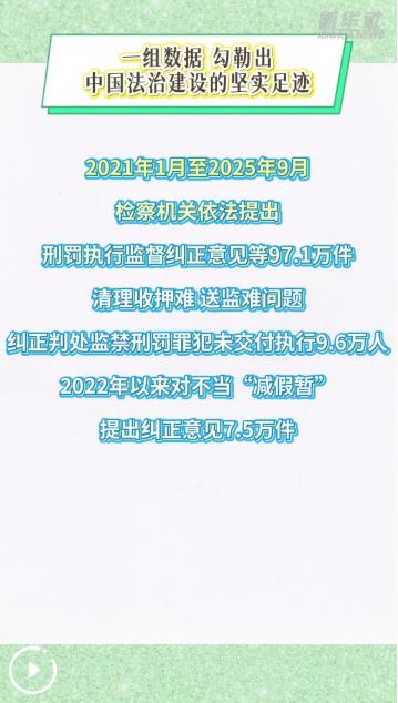一組數(shù)據(jù),勾勒出中國法治建設(shè)的堅實足跡:2021年1月至2025年9月,檢察機(jī)關(guān)依法提出刑罰執(zhí)行監(jiān)督糾正意見等97.1萬件;清理收押難、送監(jiān)難問題,糾正判處監(jiān)禁刑罰罪犯未交付執(zhí)行9.6萬人;2022年以來對不當(dāng)“減假暫”提出糾正意見7.5萬件……