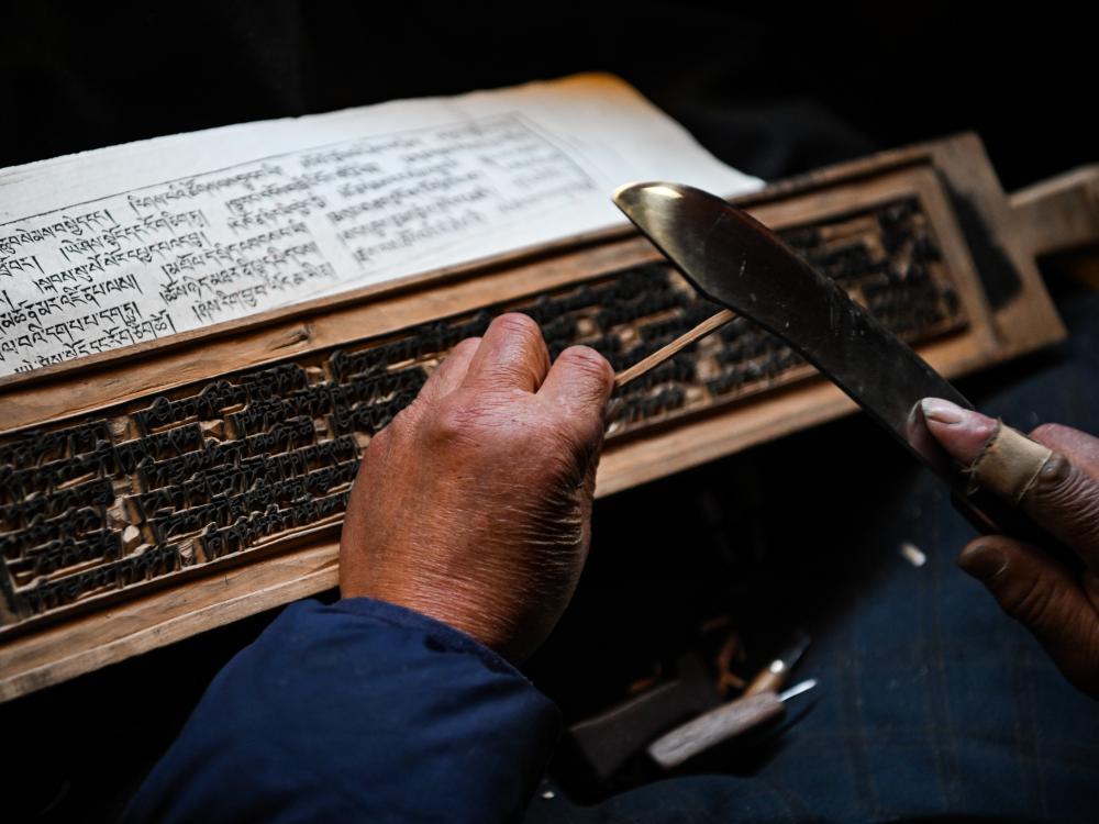 2024年11月2日,在德格印經(jīng)院拍攝的院藏印版。(新華社記者 沈伯韓 攝)