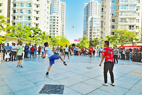 會(huì)后,來(lái)自全市各地的毽球愛好者展演了各自的絕活兒,小巧的毽球在表演者的腳尖上下翻飛,精彩迭出,高潮迭起,不斷博得觀眾的掌聲和叫好聲。(魯明強(qiáng) 攝影報(bào)道)