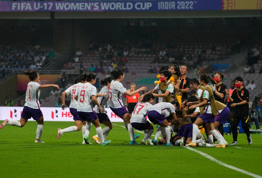 新華社孟買(mǎi)10月12日電 在12日進(jìn)行的2022年U17女足世界杯C組首輪比賽中,中國(guó)隊(duì)以2:1戰(zhàn)勝墨西哥隊(duì),取得“開(kāi)門(mén)紅”。