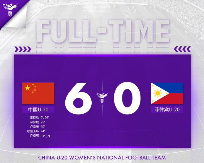 本場(chǎng)中國(guó)隊(duì)完全掌控了局面?;魫傂涝谏习雸?chǎng)打進(jìn)兩球,鄒夢(mèng)瑤也打進(jìn)一球。下半場(chǎng)比賽,盧家玉、歐陽(yáng)玉環(huán)和喬睿琪各入一球,幫助中國(guó)隊(duì)輕松取勝。
