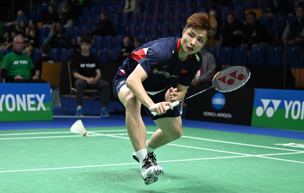 資料圖:3月8日,中國選手石宇奇在德國公開賽男單首輪中。新華社/法新