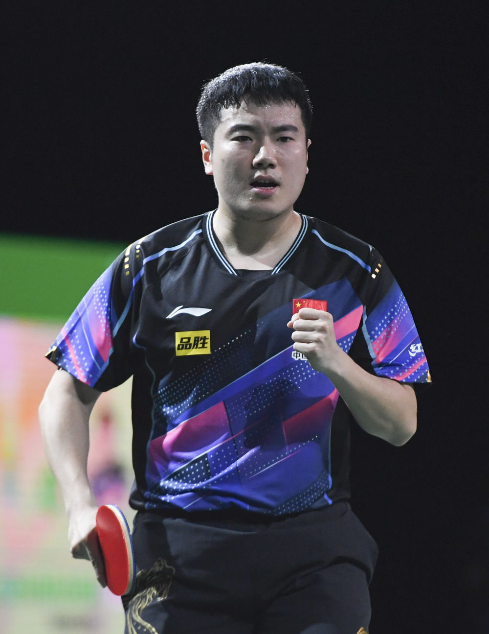 5月22日,馬龍在比賽中回球。新華社記者 張譽(yù)東 攝