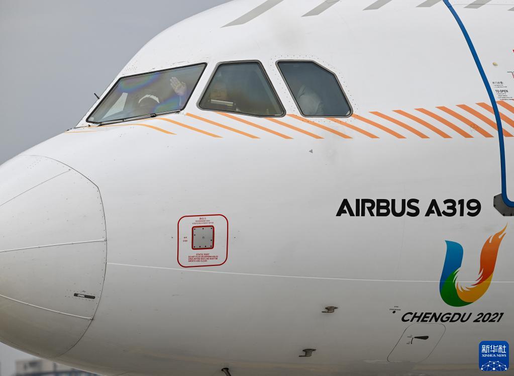 6月8日,在成都天府國(guó)際機(jī)場(chǎng),“中國(guó)民航英雄機(jī)長(zhǎng)”劉傳健執(zhí)飛護(hù)送成都大運(yùn)會(huì)火炬火種的航班。新華社記者 王曦 攝