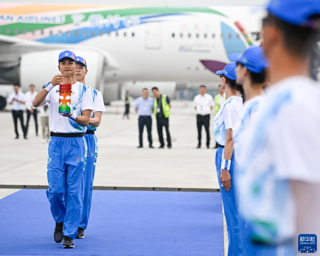 作為大運(yùn)會(huì)官方合作伙伴,四川航空承擔(dān)此次火炬?zhèn)鬟f火種航空運(yùn)輸保障任務(wù)。當(dāng)日,“大運(yùn)號(hào)”主題彩繪飛機(jī)執(zhí)行此次任務(wù),并由“中國(guó)民航英雄機(jī)長(zhǎng)”劉傳健負(fù)責(zé)執(zhí)飛本次航班。在火種護(hù)衛(wèi)隊(duì)21名隊(duì)員的護(hù)送下,火種飛赴火炬?zhèn)鬟f首站城市——北京。從6月10日到7月28日,大運(yùn)火炬將承載著大運(yùn)精神,奏響“奮斗青春 放飛夢(mèng)想”的成都大運(yùn)會(huì)序章。