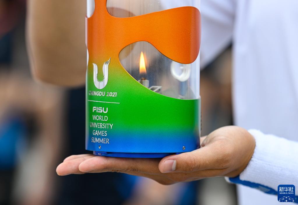 這是6月8日在成都天府國(guó)際機(jī)場(chǎng)拍攝的成都大運(yùn)會(huì)火種燈。新華社記者 王曦 攝