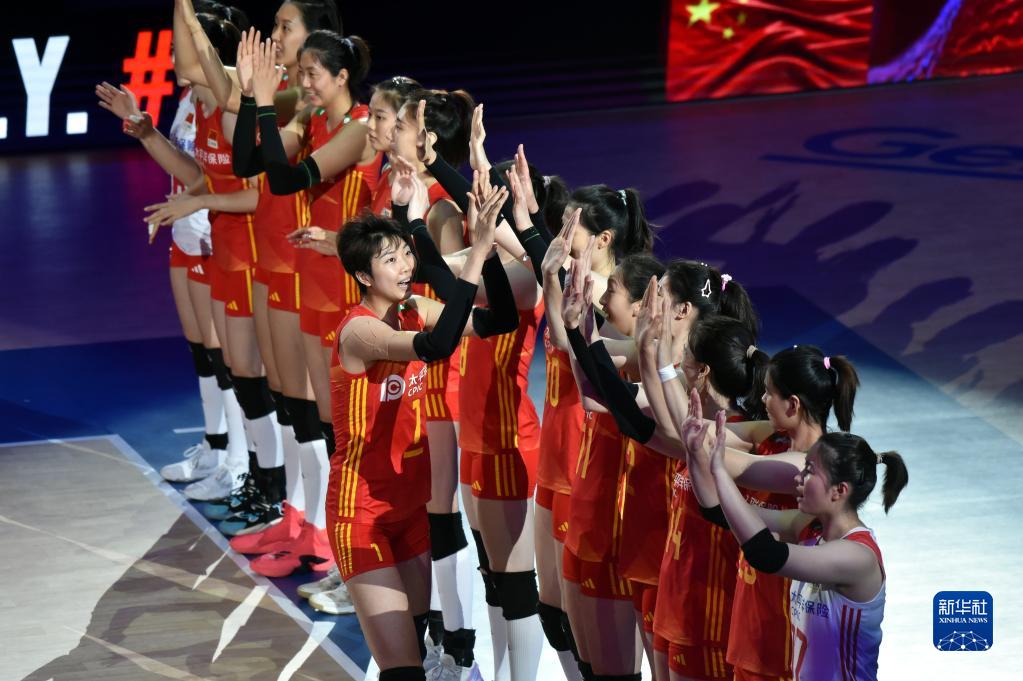 6月13日,中國(guó)隊(duì)球員慶祝得分。新華社記者盧炳輝攝